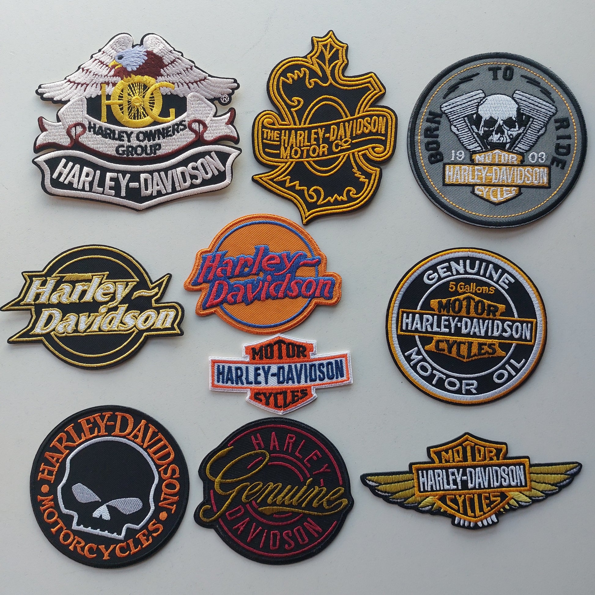 Lotto 10 Nuove Toppe patches Harley Davidson piccole per davanti giubbotto moto, tutte autocollanti, termoadesive